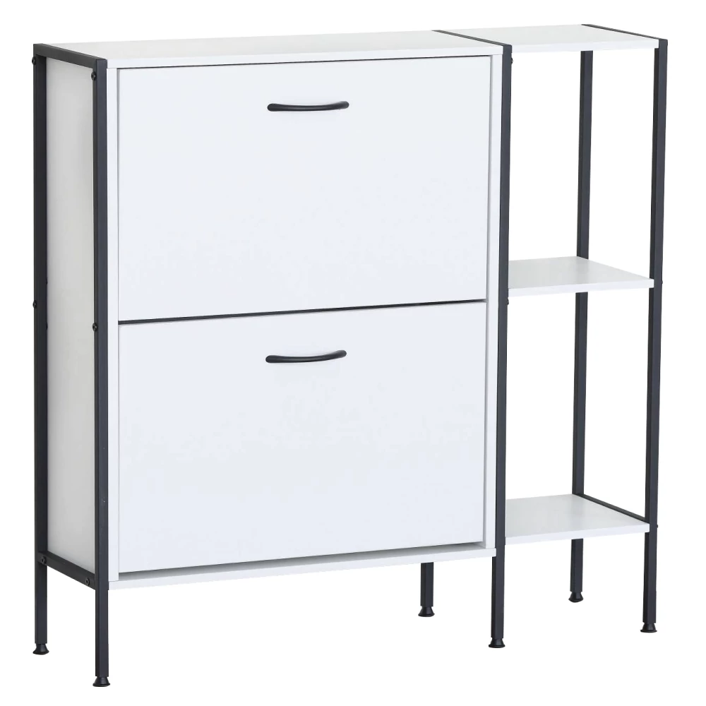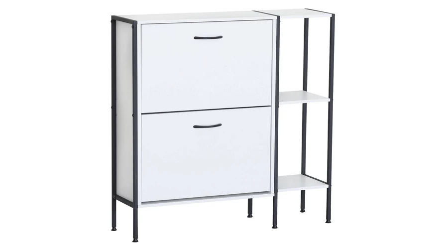 Anyag: faforgács/acél/műanyag Szín: féher/fekete Méretek (SzxMéxMa): 88x24x87 cm Anyag vastagsága: 1,2-1,5 cm Lábakon Két billenős fiók A fiók 2 részre van felosztva Billenős fiók méretei (SzxMa): 56,4x34,5 cm Billenős fiók teherbírása: 6 kg Polcok Felső lemez teherbírása: 10 kg Modern dizájn Praktikus Szétszerelve szállítva