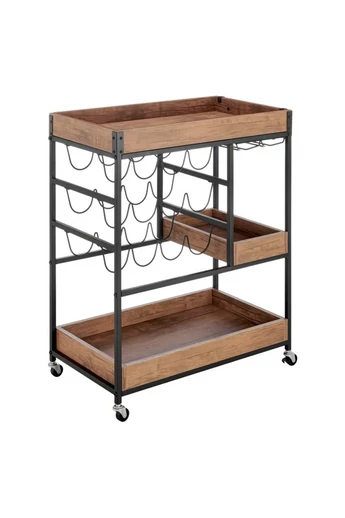Tálalókocsi, sötét tölgy/fekete, PORTIS