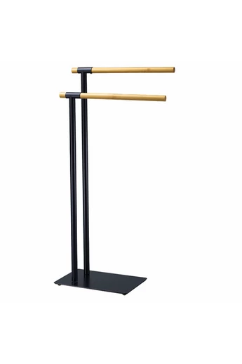 Törölközőtartó, fekete fém/bambusz, LABAN