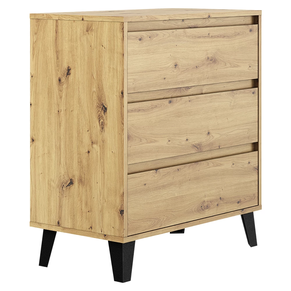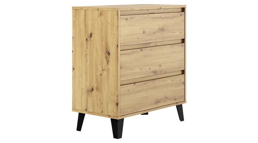 Anyag: laminált DTD Szín: artisan tölgy Méretek (SzxMéxMa): 70x38,8x78,4 cm Alsó tér magassága a padlótól: 12 cm Három fiók Fiók mérete (SzxMa): 66,2x18 cm Fiók belső méretei (SzxMéxMa): 60,8x33,3x9 cm Lábakon Lábak színe: fekete Fiók teherbírása: 5 kg Felső lap teherbírása: 15 kg Modern stílus Fogantyúk nélkül Ajánljuk a falhoz rögzíteni Szétszerelve szállítva