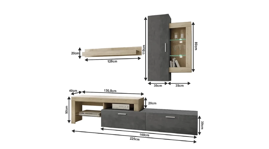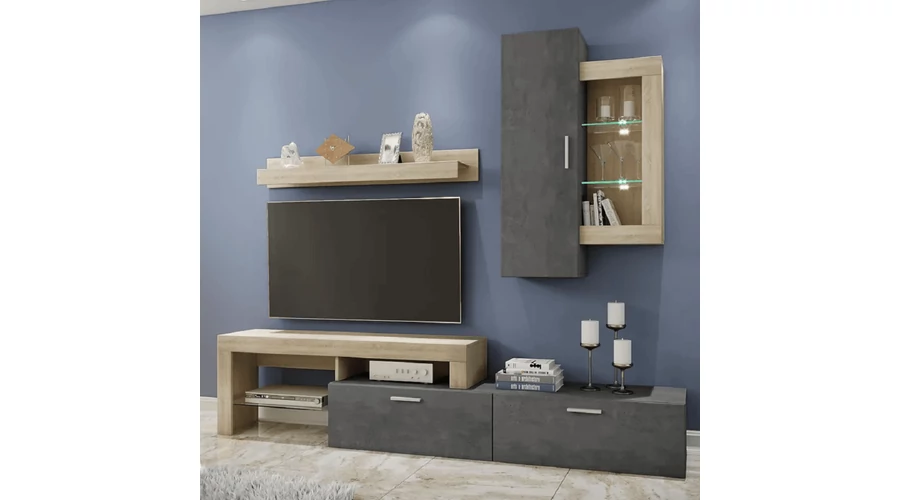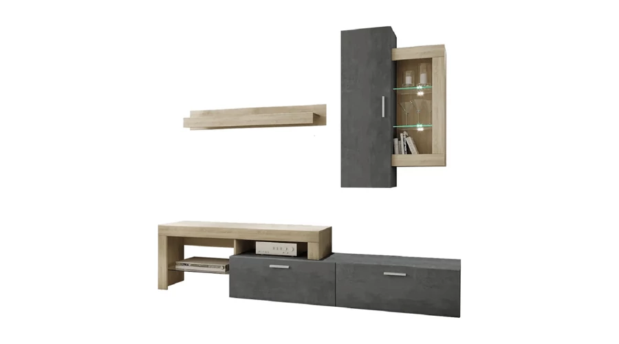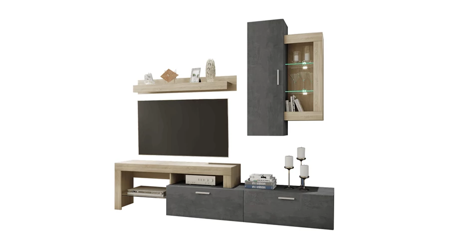 Nappali fal, tölgyfa sonoma/sötét beton, CALABRIA