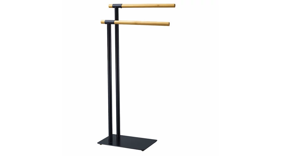 Törölközőtartó, fekete fém/bambusz, LABAN