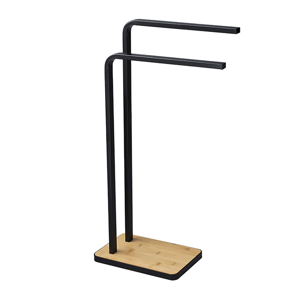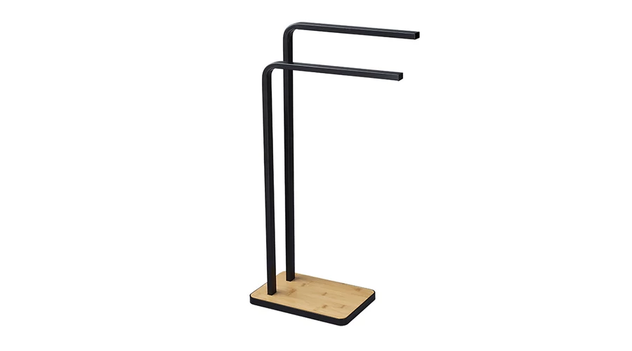 Törölközőtartó, fekete fém/bambusz, LABAV